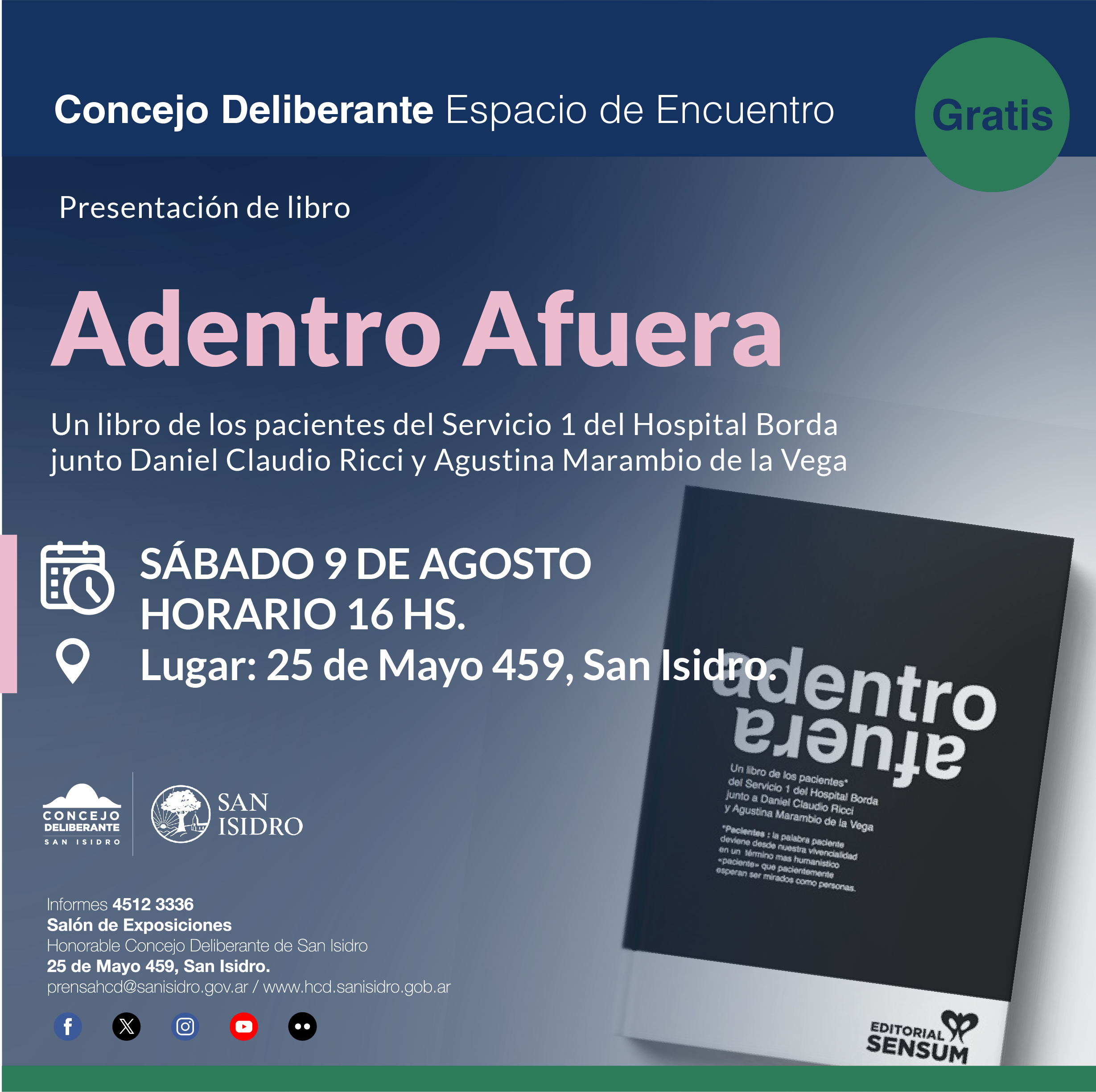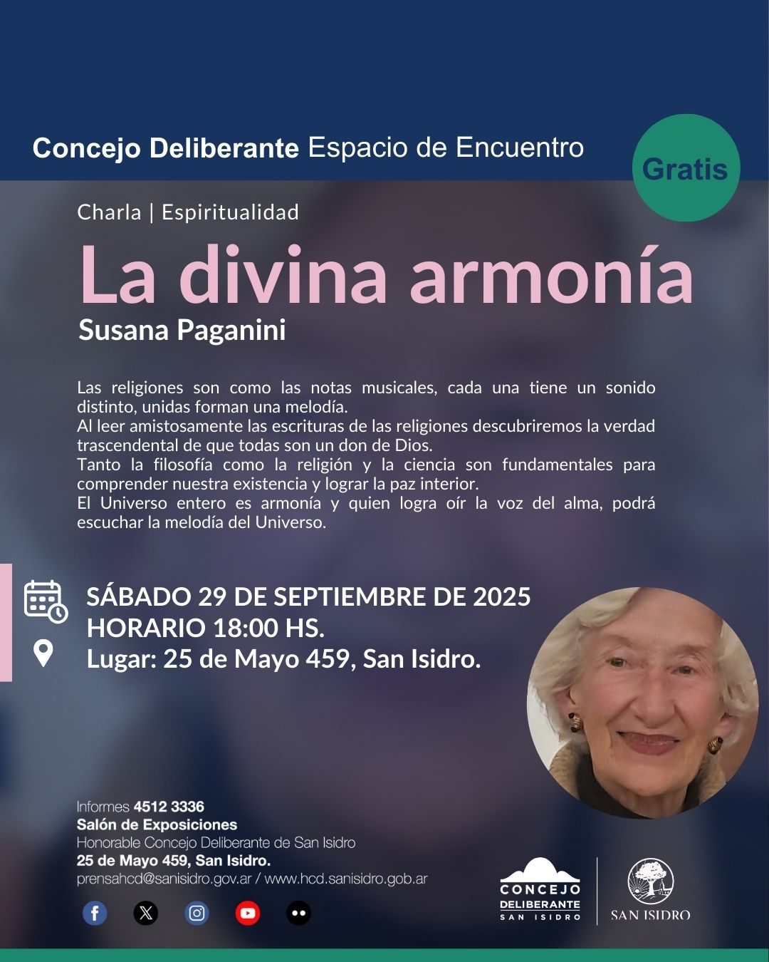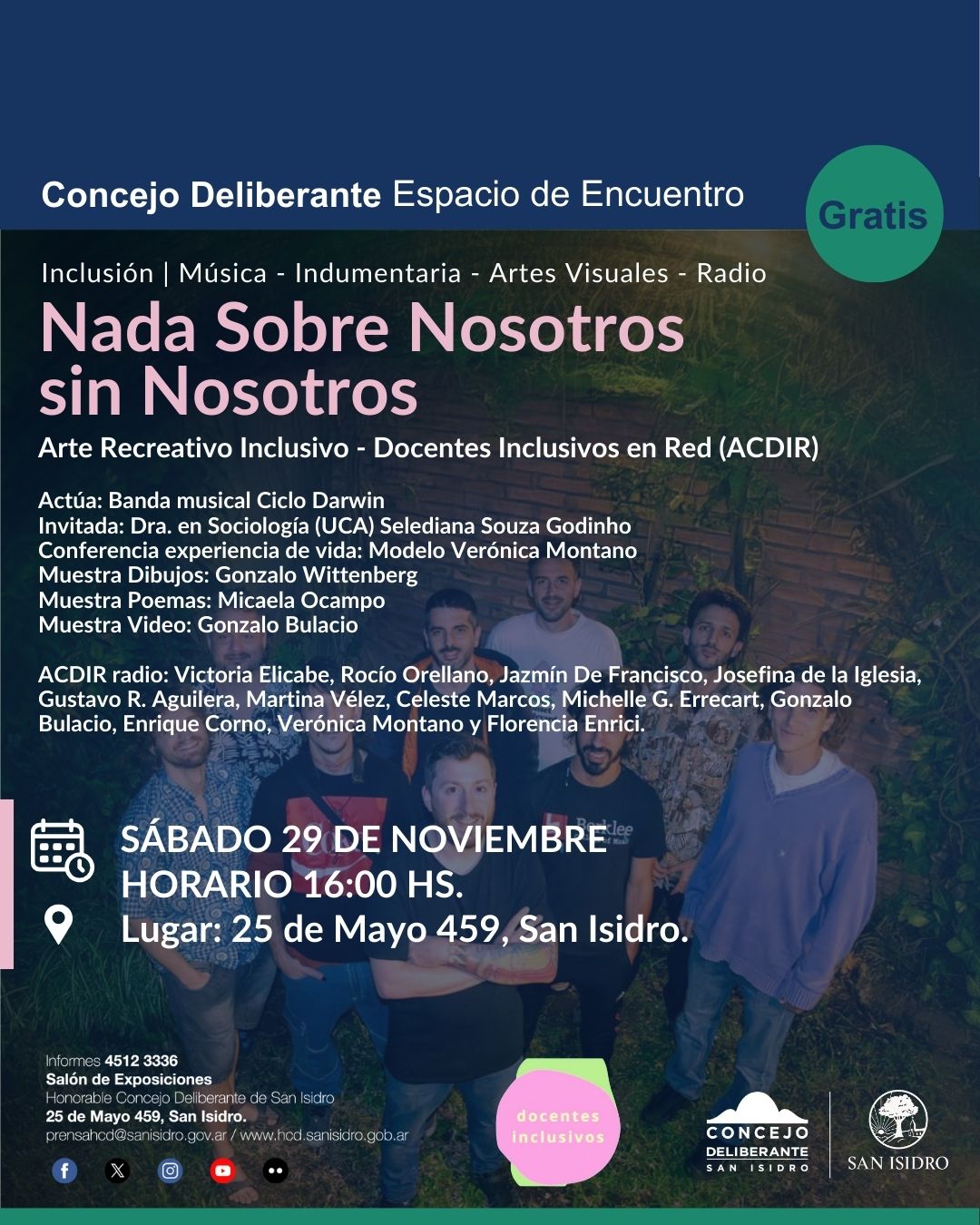 Las actividades culturales organizadas por el Concejo Deliberante de San Isidro son gratuitas y no se necesita retiro de entradas o reservas previas. El HCD de San Isidro garantiza la igualdad de acceso a este recinto.