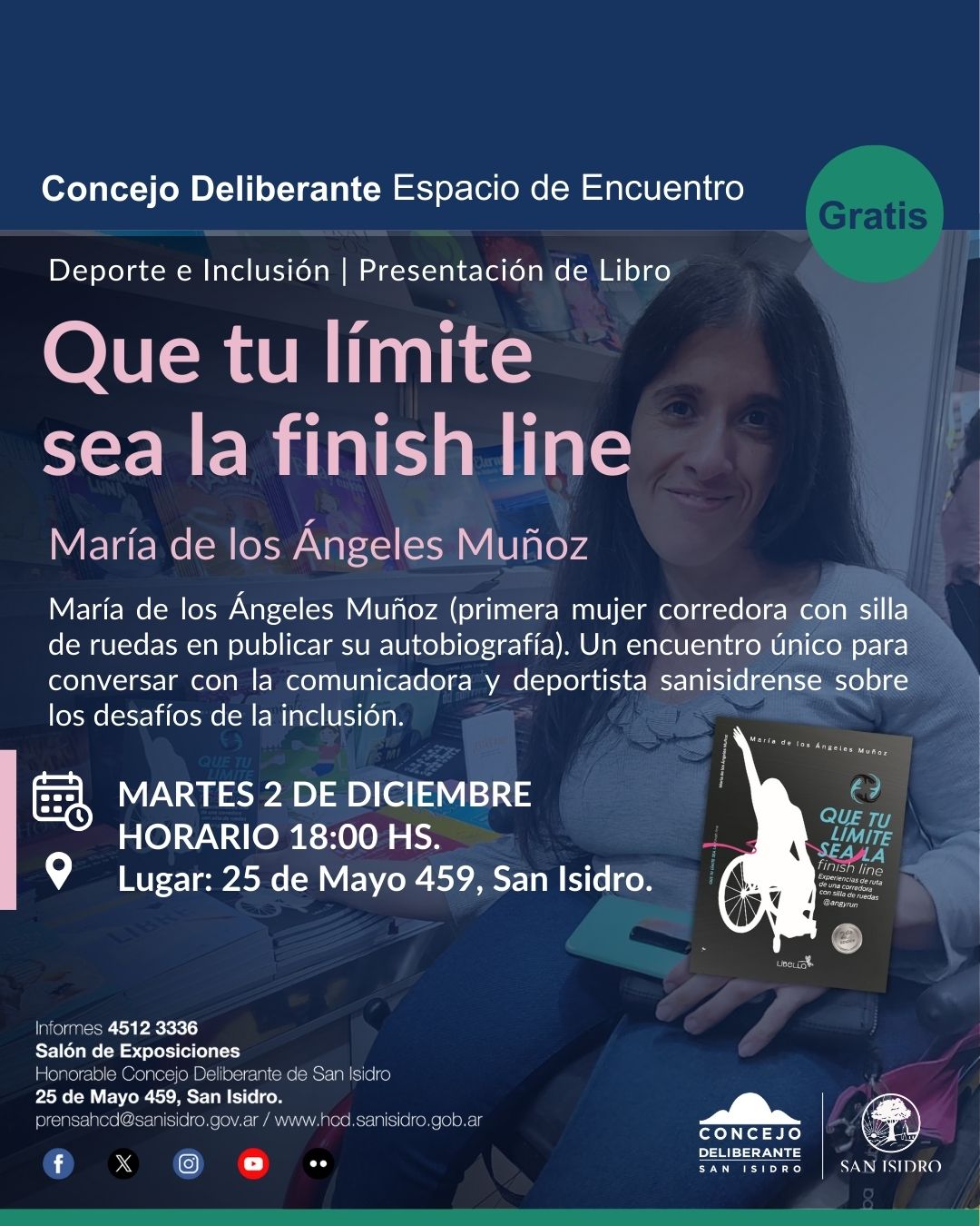 María de los Ángeles Muñoz (primera mujer corredora con silla de ruedas en publicar su autobiografía). Un encuentro único para conversar con la comunicadora y deportista sanisidrense sobre los desafíos de la inclusión.